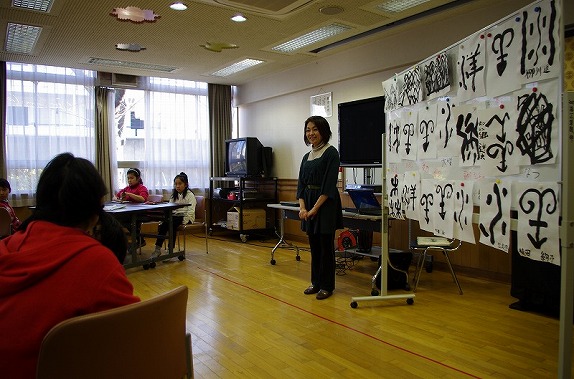 19日は3、4年生を中心に20数名、25日は5,6年生を中心に20数名の生徒たちと古代文字のなりたちから、アートワークまで、あっという間の3時間でした。